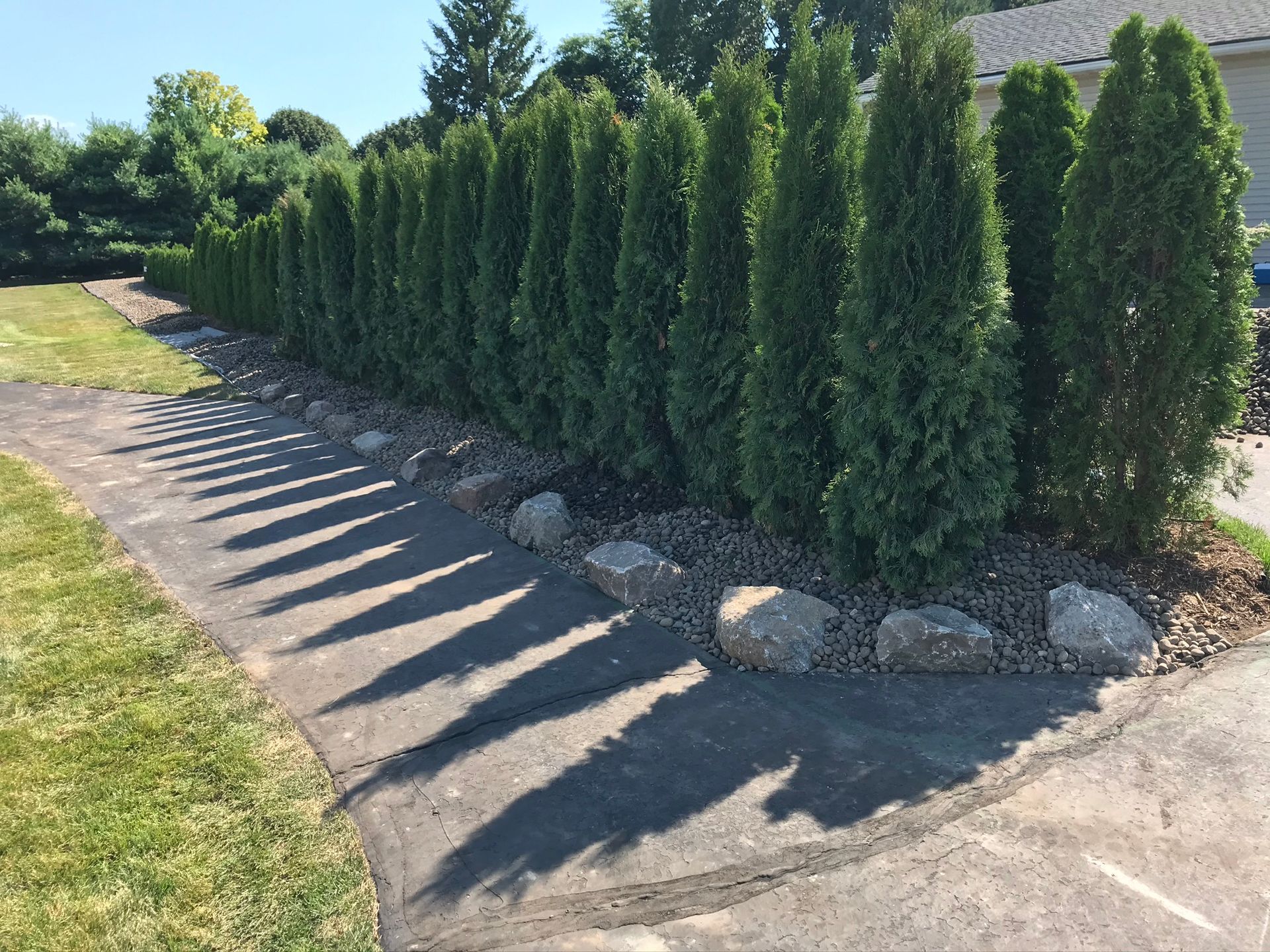 A white 3D-style logo for KBK Landscaping Inc. with a small green tree icon on the left, set against a dark green background.
